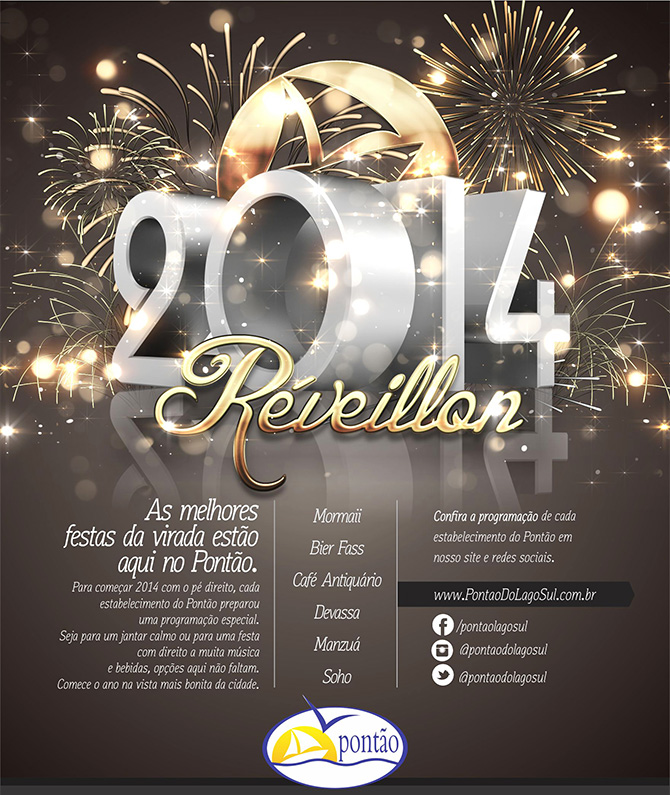Contagem regressiva para a festa de fim de ano mais esperada de Brasília: o Réveillon no Pontão do Lago Sul. Com uma linda queima de fogos de oito minutos, à beira do Lago Paranoá, um dos cartões-postais mais bonitos da capital federal, o espaço oferece festas para todos os gostos. São muitas opções para você entrar em 2014 com o pé direito e muita animação: